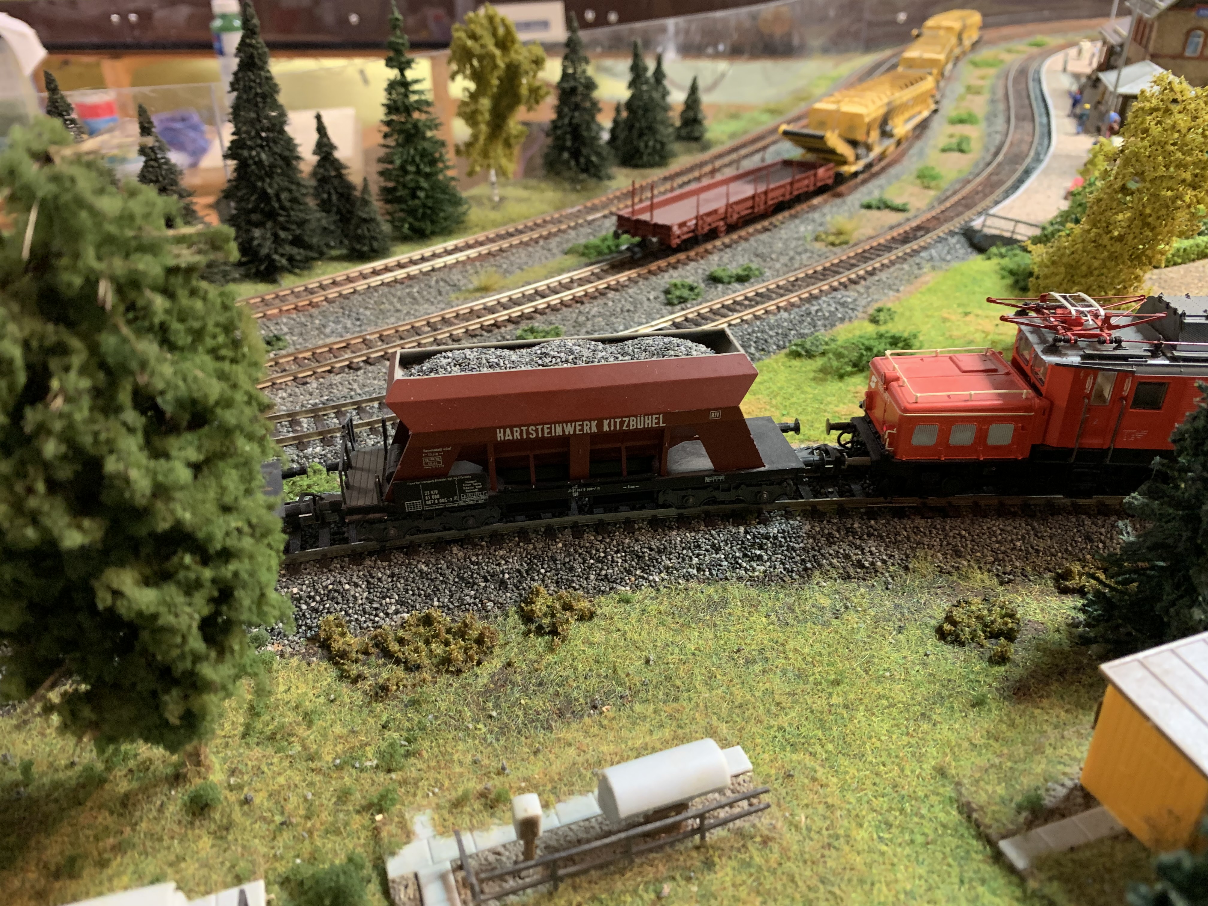 Unser Verein ist auf dem Gelände des Hartsteinwerks Kitzbühel eingemietet, wo regelmäßig Gleisschotter für die ÖBB produziert wird. Wir bieten diesen Naturgesteinsschotter – natürlich in den maßstäblich richtigen Korngrößen – unseren Modelleisenbahnkollegen in ganz Europa an. Er ist für alle gängigen Spurweiten in Verpackungen zu ein und sechs Kilogramm erhältlich und ein Highlight jeder Modelleisenbahnanlage.