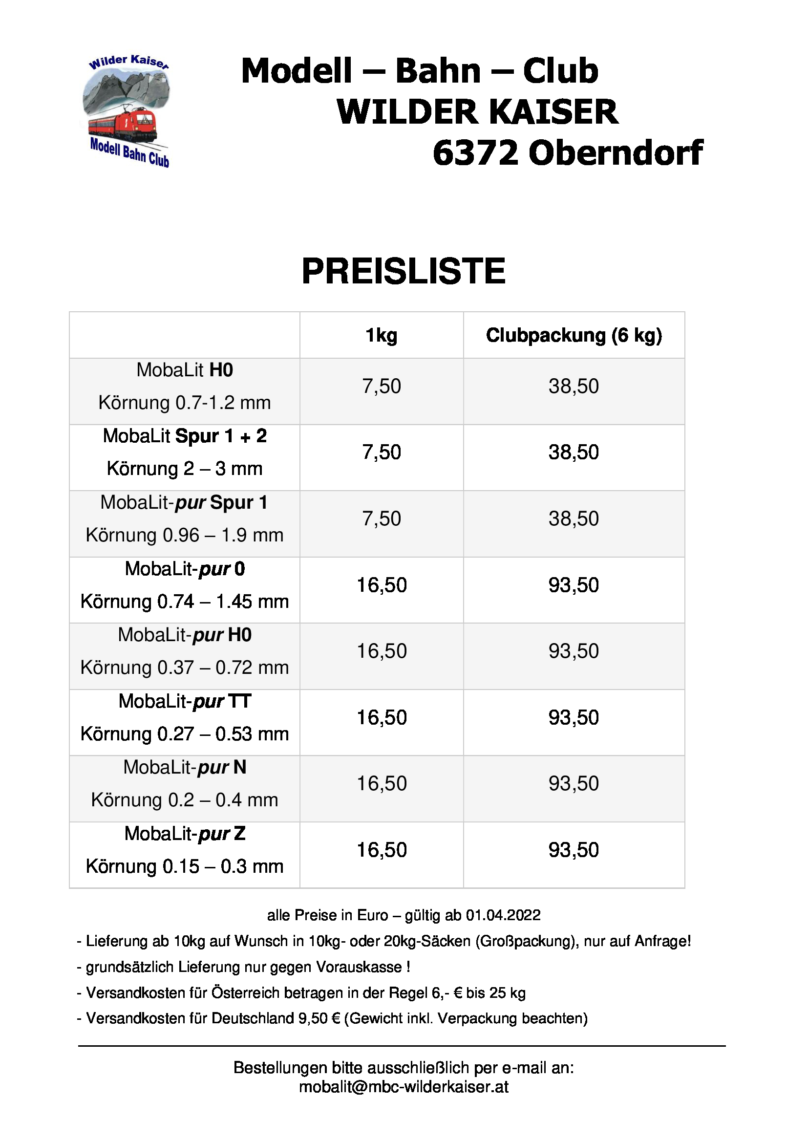 Bestellungen werden ausschließlich über eMail mobalit@mbc-wilderkaiser.at abgewickelt.
